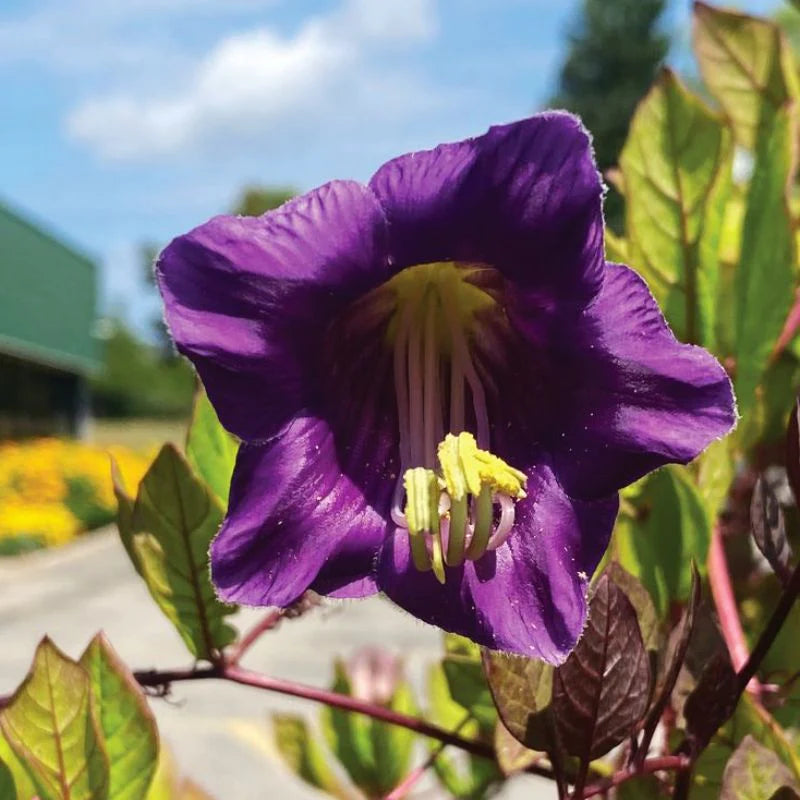 Cathedral Bells Violet is a stunning climbing vine renowned for its dramatic violet bell-shaped flowers. Its vigorous growth, coupled with the captivating color of its blooms, creates an eye-catching vertical display in gardens, trellises, and fences. This plant is perfect for those looking to add a touch of elegance, fragrance, and height to their landscapes.