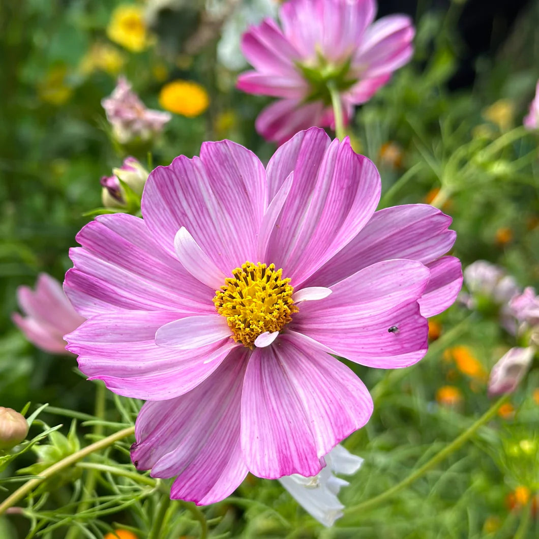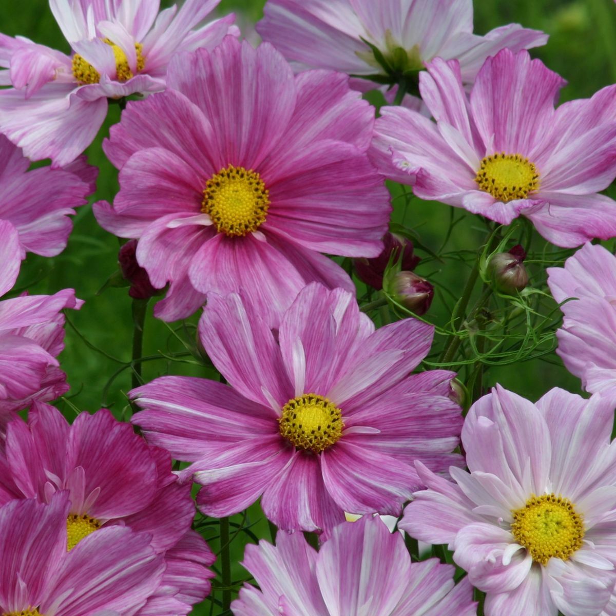 - Cosmos Rosetta is a striking annual flower that brings a burst of vibrant pink hues to any garden. Known for its eye-catching, daisy-like blooms with delicate frilled petals, Cosmos Rosetta is a perfect addition to borders, beds, or containers. It attracts pollinators such as bees and butterflies, adding both beauty and ecological value to your garden. With its easy-to-grow nature and long blooming season, this flower offers color and charm from early summer to autumn.