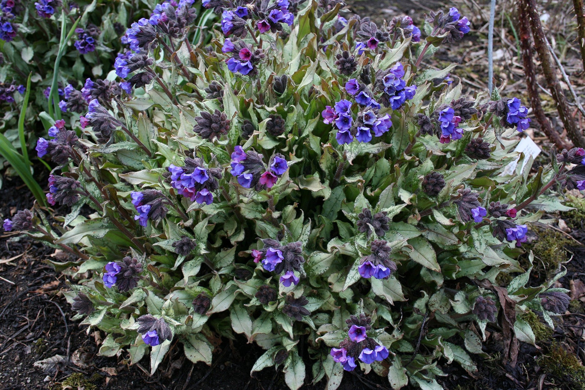 • Spring Blooms: In early spring, this plant bursts into bloom with clusters of small flowers that transition from pink to blue as they mature. These blooms bring a fresh pop of color to the garden, especially after a long winter.