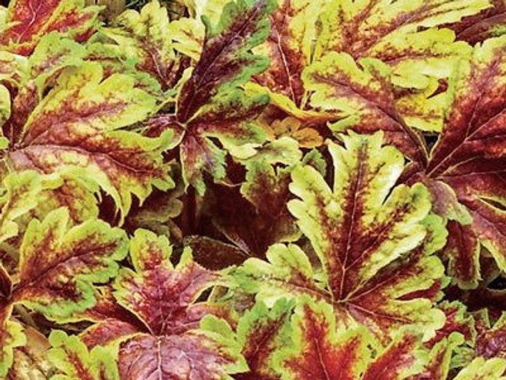 Gold Zebra Foamy Bells (Heuchera) is a visually striking plant, known for its vibrant golden foliage with contrasting dark veins. This perennial beauty adds a touch of drama and elegance to your garden, making it a perfect choice for both contemporary and traditional landscapes. Whether used in containers, borders, or as a ground cover, Gold Zebra Foamy Bells delivers year-round visual interest with its bold color and delicate flowers.
