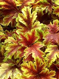 - Golden Foliage with Dark Veins: The standout feature of Gold Zebra Foamy Bells is its bright golden-yellow foliage, which is beautifully contrasted by dark veins. This unique color pattern adds an element of vibrancy and texture to any garden. The foliage changes throughout the seasons, becoming more intense in color, especially in cooler temperatures.