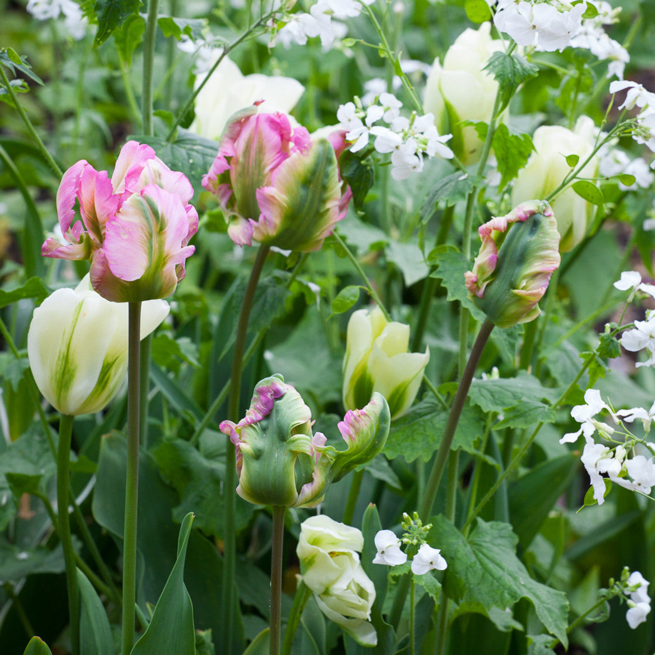 Add a modern twist to your spring garden with the striking Green Wave Tulip. This unique tulip variety features delicate pink petals adorned with bold green streaks, forming a ruffled, almost artistic appearance. Its intricate beauty is sure to captivate and elevate any floral display.