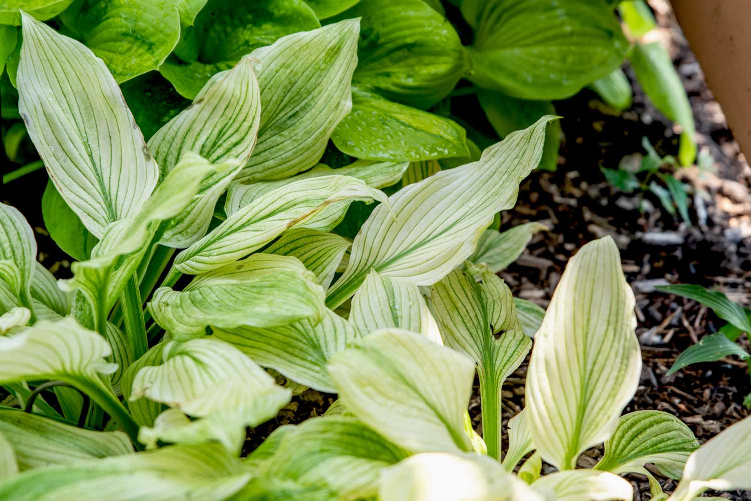 The Improved White Feather Hosta thrives in partial to full shade. It can tolerate some morning sunlight but should be protected from harsh afternoon sun to prevent leaf burn. Ideal for shaded garden beds or areas with dappled light.