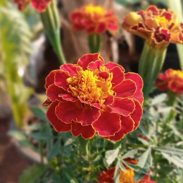 Marigold Jafri is a popular variety known for its bright orange blooms and strong fragrance. These plants grow to a height of around 30-40 cm, making them perfect for flower beds, borders, and containers. Marigold Jafri thrives in full sunlight and well-drained soil, and its vibrant flowers attract pollinators such as bees and butterflies. These plants are also known for their ability to deter pests, making them a great addition to vegetable gardens.