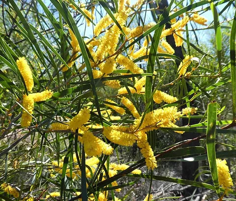 - Vibrant Yellow and Raspberry-Colored Flowers: The striking contrast between bright yellow flowers and their raspberry-colored base gives the Raspberry Jam Wattle its unique, eye-catching appearance.