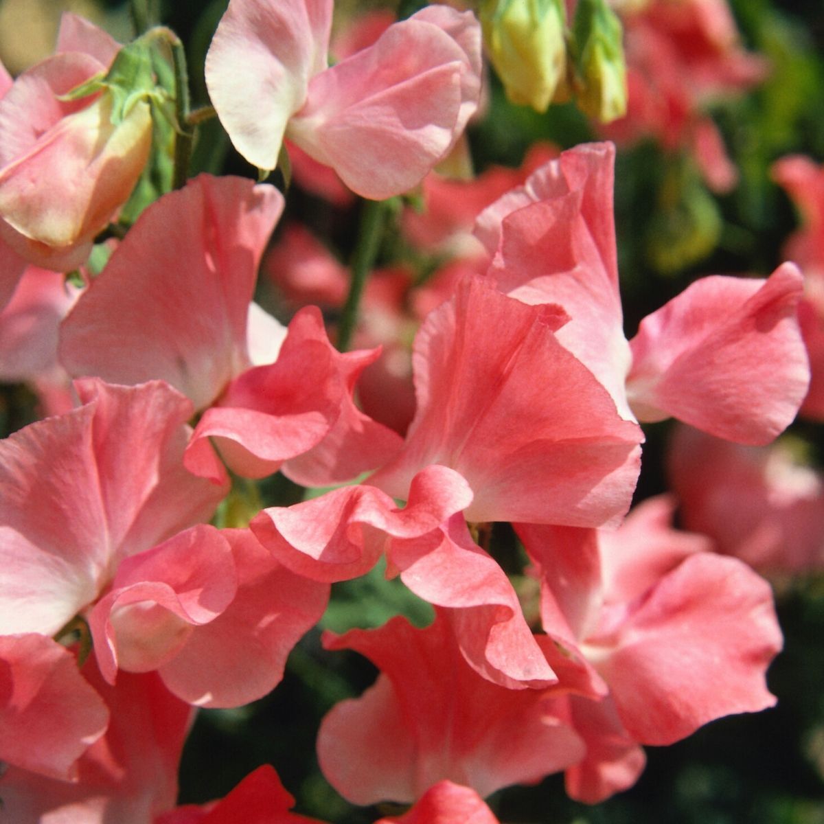Sweetpea Mammoth Salmon Cream features large, beautiful salmon-pink blooms with a hint of cream that add a soft, romantic touch to any garden. Known for its strong fragrance and impressive flower size, it makes a stunning addition to garden beds, fences, and trellises.