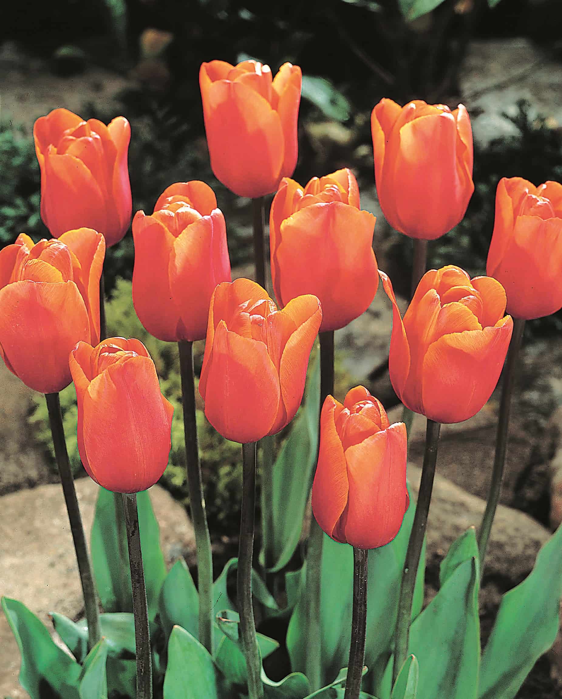 For best results, water the bulbs regularly during dry spells and enjoy their vibrant orange blooms each spring. With proper care, these tulips will continue to brighten your garden with their energetic color season after season.