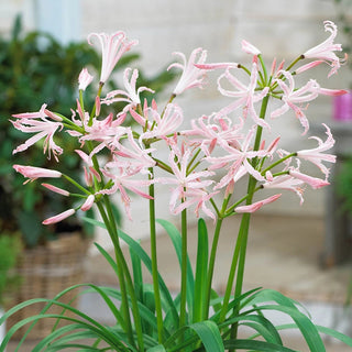 The Vesta Naked Lady, a stunning variety of Amaryllis Belladonna, is known for its elegant, soft-pink blooms that appear in late summer to early fall. True to its name, the flowers bloom from tall, leafless stems, creating a striking contrast against the green foliage that follows. The delicate, trumpet-shaped flowers are not only visually appealing but also emit a pleasant fragrance that fills the garden with a sweet scent. Vesta Naked Lady is a perfect addition to any garden, offering a unique and graceful beauty.