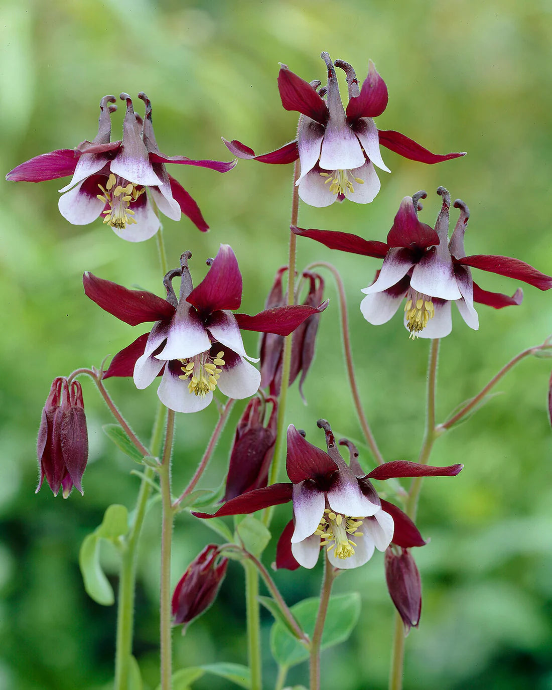 The William Guinness Columbine is a striking perennial that brings a sophisticated touch to any garden. Known for its bold, dark purple blooms with contrasting white spurs, this variety adds a sense of elegance and drama to flower beds, borders, and cottage gardens. Its unique coloring and delicate, intricate flowers make it a standout in any setting, while its robust, hardy nature ensures it thrives year after year.